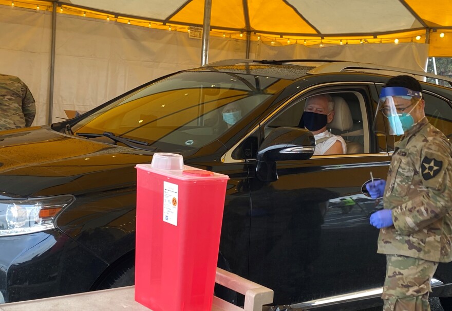 National Guard nurses were distributing the Moderna vaccine Monday, but they expect to add the Pfizer vaccine as the site continues for several weeks.